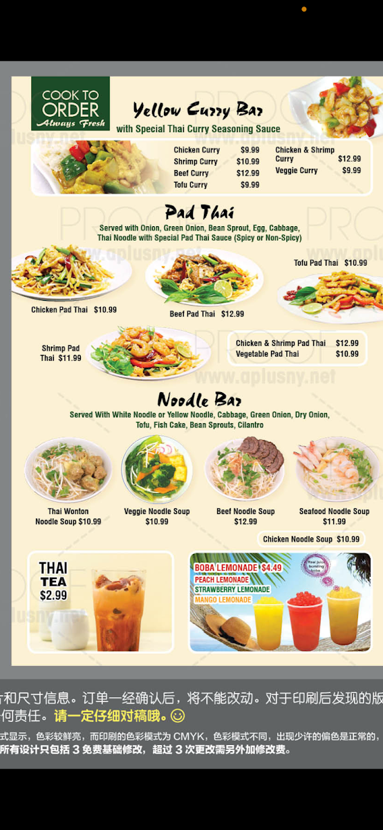 Discover classics like the Chicken Pad Thai and Beef Pad Thai, each expertly crafted with fresh ingredients and a choice of spicy or non-spicy sauce. At just $8.99 and $9.59 respectively, these dishes deliver both flavor and value. Don’t miss their Yellow Curry, with a notable Chicken Curry at $8.99 and Shrimp Curry for $9.99, which is bursting with tantalizing spices.